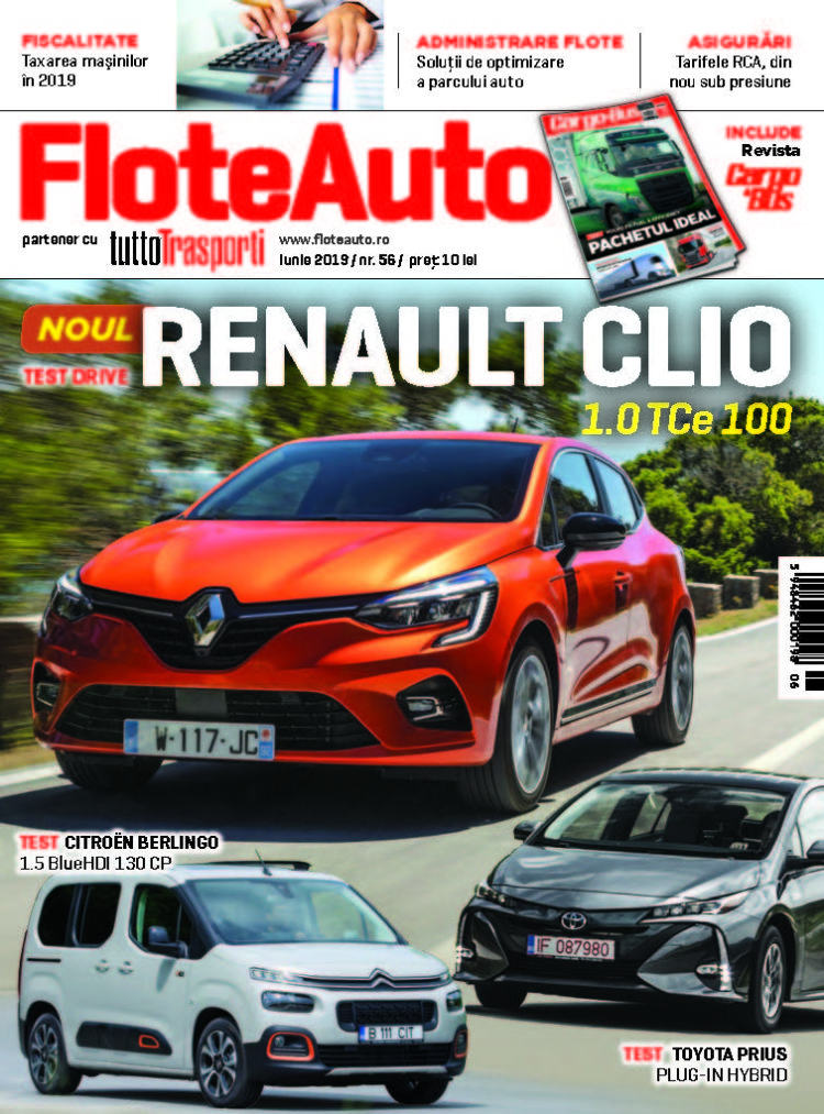 Revista Cargo&Bus poate fi cumpărată din toate marile centre de distribuție presă (inmedio și benzinării), alături de revista FloteAuto. În numărul 56 al revistei FloteAuto (Iunie 2019) puteți găsi primul test cu noua generație Renault Clio, într-o configurație foarte potrivită pentru flotele companiilor, echipată cu noul motor 1.0 TCe de 100 CP. În secțiunea dedicată mașinilor electrificate puteți citi un test cu noul Toyota Prius plug-in hybrid. De asemenea, segmentul vehiculelor comerciale conține un test cu Citroen Berlingo cu noul motor 1.5 BlueHDI de 130 CP. Prețul pachetului FloteAuto – Cargo&Bus este de 10 lei.