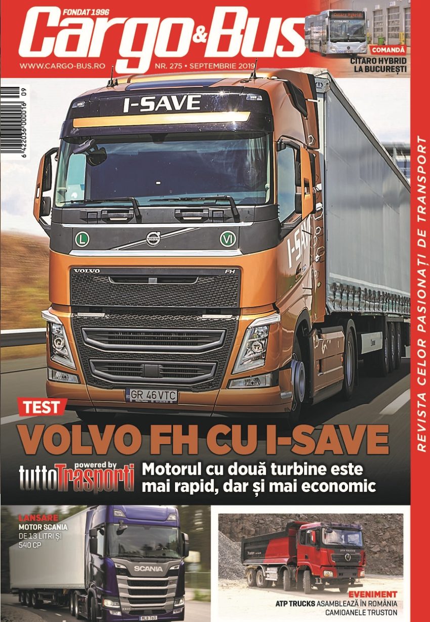 A apărut numărul 275 al revistei Cargo&Bus, septembrie 2019, cu un conținut care îmbină, ca de obicei, testele și prezentările de vehicule comerciale cu cele mai noi informații din lumea transporturilor și logisticii.