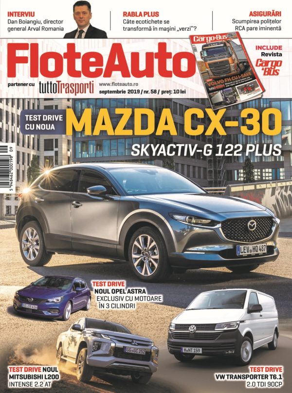 Revista Cargo&Bus poate fi cumpărată din toate marile centre de distribuție presă (inmedio și benzinării), alături de revista FloteAuto. În numărul 58 al revistei FloteAuto (Septembrie 2019) puteți găsi un test drive cu noul suv compact Mazda CX-30, în versiunea de motorizare cea mai potrivită pentru flote, Skyactive-G 122. Alte teste interesante prezente în acest număr sunt cele cu noul Opel Astra, utilitara VW Transporter T6.1 sau noua generație a pick-up-ului Mitshubishi L200. Prețul pachetului FloteAuto – Cargo&Bus este de 10 lei.