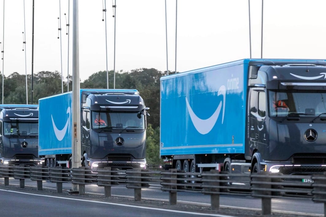 Comanda pentru camioane a fost plasată în ianuarie 2025 , dar abia recent aceste vehicule electrice au început să circule pe drumurile din Marea Britanie. Camioanele în sine sunt Mercedes-Benz eActros 600 și sunt folosite pentru a transporta produse între depozitele logistice ale Amazon din Marea Britanie. Amazon afirmă că, cu o autonomie de 500 km, camioanele pot transporta până la 22 de tone metrice per călătorie efectuată între centrele de distribuție, centrele de sortare și centrele de livrare. Retailerul online a instalat încărcătoare rapide în aceste locații pentru a sprijini implementarea lor, inclusiv încărcătoare rapide de 360 kW.
