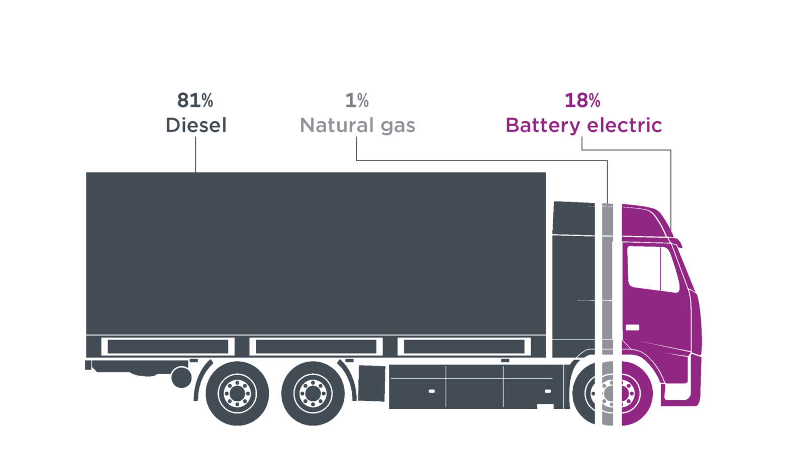 Volvo și Renault , cele două mărci ale Grupului Volvo, au continuat să domine piața cu emisii zero ca volum. Acestea au reprezentat o cotă combinată de 57% din totalul vânzărilor de camioane grele cu emisii zero, iar MAN a urcat pe locul trei cu o cotă de vânzări de 15% după lansarea modelului său eTGX. Vânzările de camioane grele cu emisii zero nu au crescut încă în aceeași măsură pentru Mercedes , care a fost mult timp cel mai mare producător de vehicule grele din Europa ca volum. Privind principalele țări europene, doar patru națiuni ( Germania, Franța, Olanda și Suedia ) au fost responsabile pentru 85% din totalul vânzărilor de camioane grele cu emisii zero.