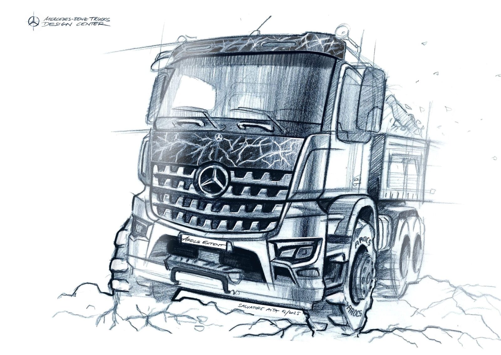 Cu Mercedes-Benz Arocs Extent, Mercedes-Benz Trucks își îmbunătățește și mai mult seria de modele axate pe construcții. Această ediție specială, limitată strict la doar 100 de unități, se remarcă prin designul său exclusiv. Capota frontală a modelului, care va intra în producție în iulie 2025, include o siglă Arocs rafinată în crom închis. O placă specială pe exterior diferențiază și mai mult acest model limitat. Pentru un nivel ridicat de recunoaștere, camionul include autocolante personalizate pe viziera soarelui și capota frontală, împreună cu o grilă decorativă finisată într-o nuanță special dezvoltată de gri mat Weather Gray.