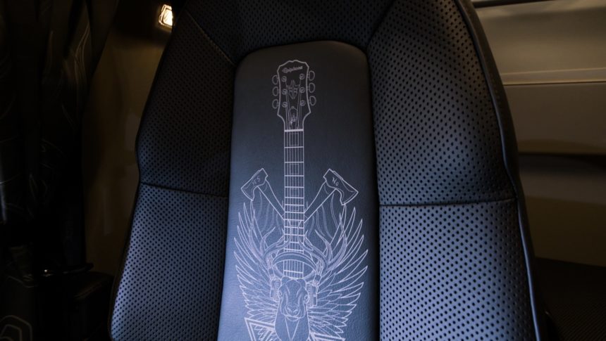 Interiorul cabinei este dominat de negru, culoarea specifică muzicii rock. Tapițeria de piele a scaunelor, fețele ușilor, dar și perdelele, sunt decorate cu elemente rock.